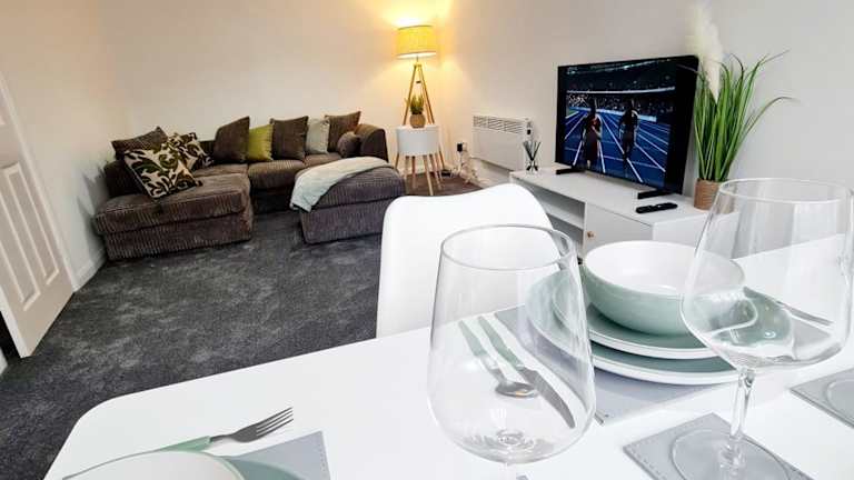 Die moderne Ferienwohnung bietet eine ansprechende und zeitgemäße Unterkunft mit zwei Schlafzimmern und modernen Annehmlichkeiten. Gästen stehen kostenloses WLAN und ein Privatparkplatz zur Verfügung. Bei der Buchung sollte die voraussichtliche Ankunftszeit in den besonderen Anfragen angegeben werden.