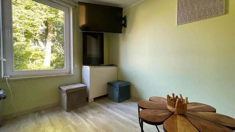 Die Ferienwohnung besteht aus zwei Schlafzimmern, einem Wohnzimmer und einem Badezimmer mit Dusche und Haartrockner. Handtücher und Bettwäsche werden bereitgestellt. Die Unterkunft bietet Nichtraucherzimmer und Familienzimmer an.