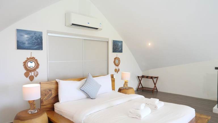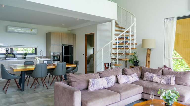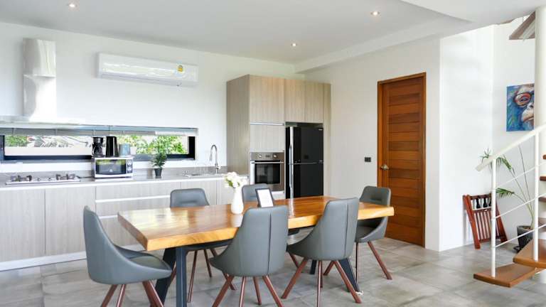 Die Villa umfasst 3 Schlafzimmer und 3 Badezimmer. Zudem sind Bettwäsche, Handtücher und ein Flachbild-TV vorhanden. Eine voll ausgestattete Küche steht den Gästen zur Verfügung und die Terrasse bietet einen herrlichen Blick auf das Meer.