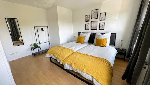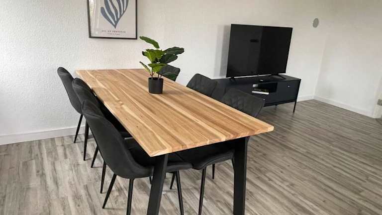 Die Ferienwohnung ist ausgestattet mit 3 Schlafzimmern, einem Flachbild-TV und einer voll ausgestatteten Küche. Die Küche beinhaltet einen Kühlschrank, Geschirrspüler, Waschmaschine, Ofen und Herdplatte. Handtücher und Bettwäsche werden bereitgestellt.