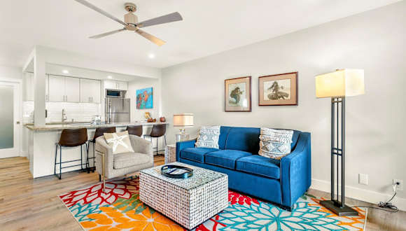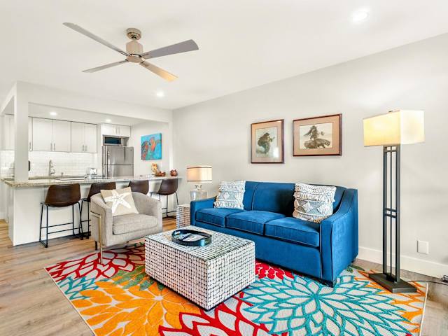 Die Ferienwohnung bietet ein Schlafzimmer und ist mit Klimaanlage, Kabel-TV, einem Essbereich sowie einer Küche ausgestattet, die einen Kühlschrank und Geschirrspüler beinhaltet. Handtücher und Bettwäsche sind vorhanden.