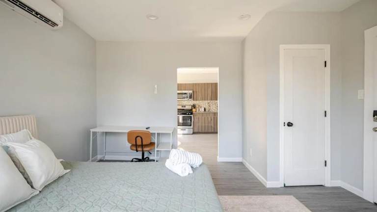 Die Ferienwohnung verfügt über ein separates Schlafzimmer, eine voll ausgestattete Küche mit Kühlschrank und Ofen sowie ein Badezimmer. Die Klimaanlage sorgt für eine angenehme Raumtemperatur. In der Unterkunft sind Nichtraucherzonen vorhanden.