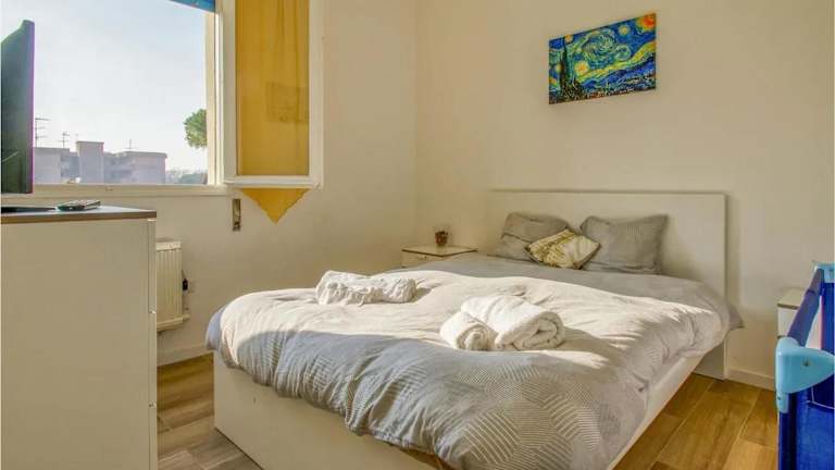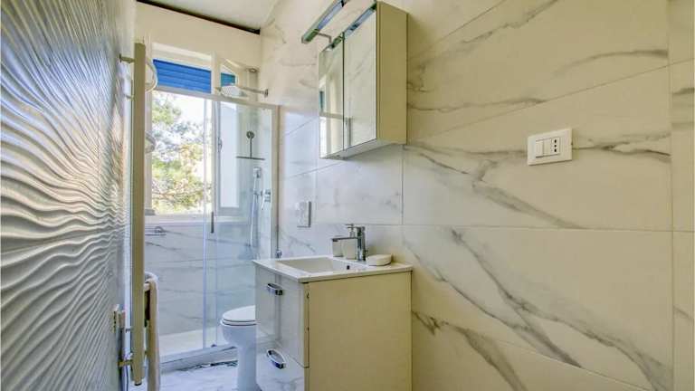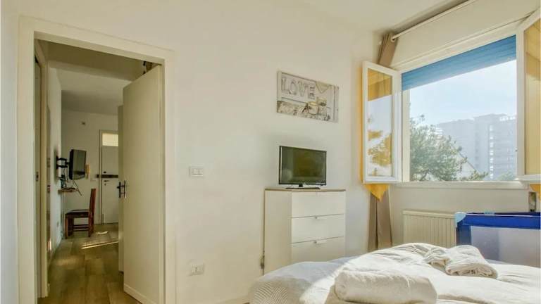 Das moderne Apartment in Lido di Pomposa umfasst eine Wohnfläche von 50 m² und verfügt über einen Balkon mit Stadtblick. Die Unterkunft bietet eine heimelige Atmosphäre für Feriengäste.