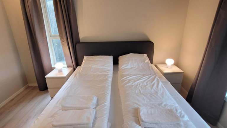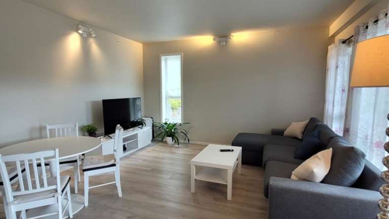 Das Apartment umfasst zwei Schlafzimmer, ein Wohnzimmer, ein Badezimmer mit Dusche und Haartrockner sowie eine voll ausgestattete Küche. Zur Ausstattung gehören Klimaanlage, Schallisolierung und kostenfreies WLAN. Handtücher und Bettwäsche werden bereitgestellt. Zudem gibt es eine Terrasse, einen Kinderspielplatz und ein Nichtraucherumfeld.