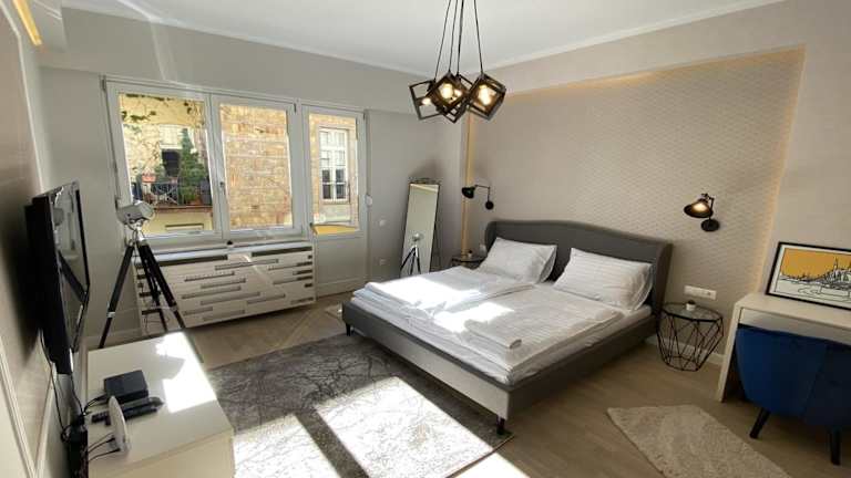 Das Modern Apartment near the river befindet sich im Zentrum von Budapest, in unmittelbarer Nähe zu sehenswerten Orten wie dem Ungarischen Nationalmuseum, der Grossen Synagoge in der Dohány utca sowie dem Blaha Lujza Platz und der Ungarischen Staatsoper. Der Gellért Hill ist ebenfalls in der Nähe und bietet eine schöne Aussicht. Der Flughafen Budapest Liszt Ferenc liegt 13 km entfernt.
