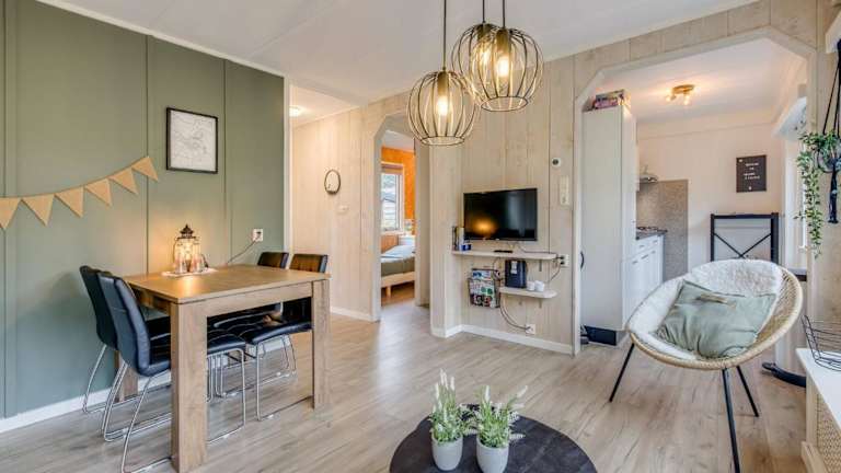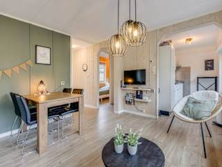 Modern Chalet in the Veluwe bietet Übernachtungsmöglichkeiten in einem modernen Ferienhaus mit Annehmlichkeiten wie kostenlosem Wifi und einem TV. Die Unterkunft ist umgeben von einem Garten und verfügt über eine Terrasse, ideal für entspannte Stunden im Freien.