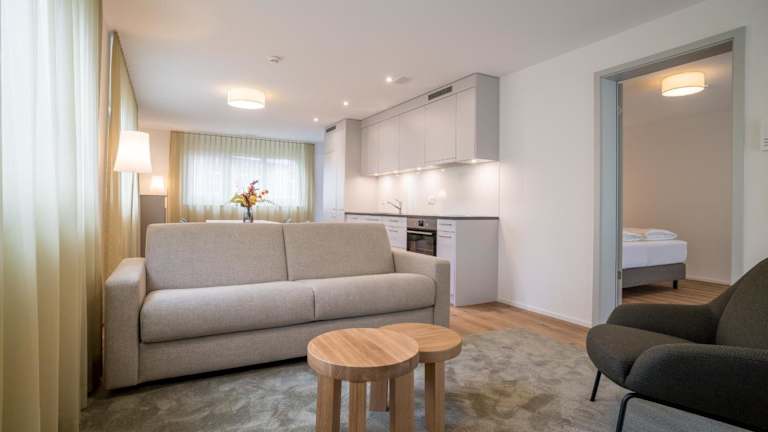 Die Apartments verfügen über einen Sitzbereich, einen Kabel Flachbild-TV, eine voll ausgestattete Küche mit Kühlschrank, Geschirrspüler, Ofen, Mikrowelle und Herdplatte. Es gibt auch eine Kaffeemaschine und einen Wasserkocher sowie ein eigenes Badezimmer mit Dusche und Haartrockner.