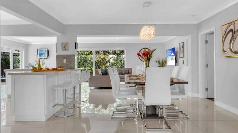 Die Unterkunft Modern Coastal Style Beach Proximity Heated Pool Tranquility Ocean Mist Key RESIDENCES bietet einen Garten sowie einen beheizten Aussenpool. Das Ferienhaus ist klimatisiert und verfügt über 5 Schlafzimmer sowie 3 Badezimmer, ausgestattet mit Dusche, Badewanne und Haartrockner. Spätestens beim Check-in müssen Gäste einen Lichtbildausweis und eine Kreditkarte vorlegen. Die Unterkunft ist Nichtraucherbereich und ermöglicht eine kontaktlose An- und Abreise.