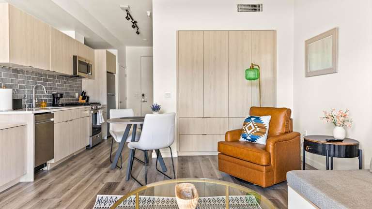 Die klimatisierten Wohneinheiten bieten eine komfortable Ausstattung mit einer voll ausgestatteten Küche, einem Essbereich und modernen Annehmlichkeiten. Es sind keine Informationen über spezifische Zimmertypen vorhanden.