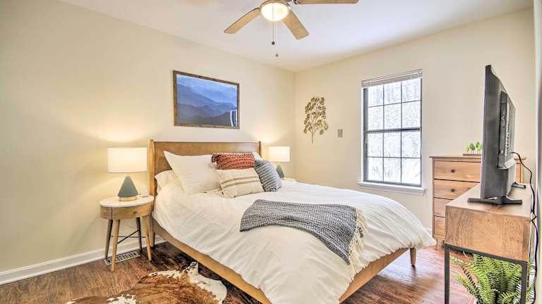 Das Modern Mountain Retreat bietet Übernachtungsmöglichkeiten in einem heimeligen Ferienhaus, das mit einem Whirlpool ausgestattet ist. Die Unterkunft verfügt über ein Deck sowie eine Klimaanlage und ist ein idealer Rückzugsort in der Natur.