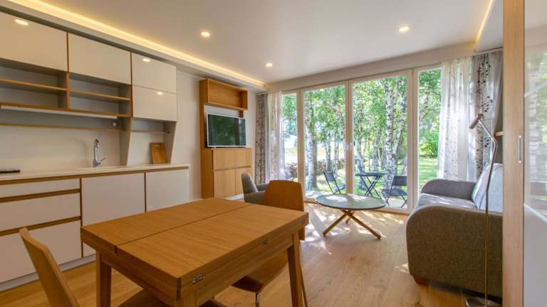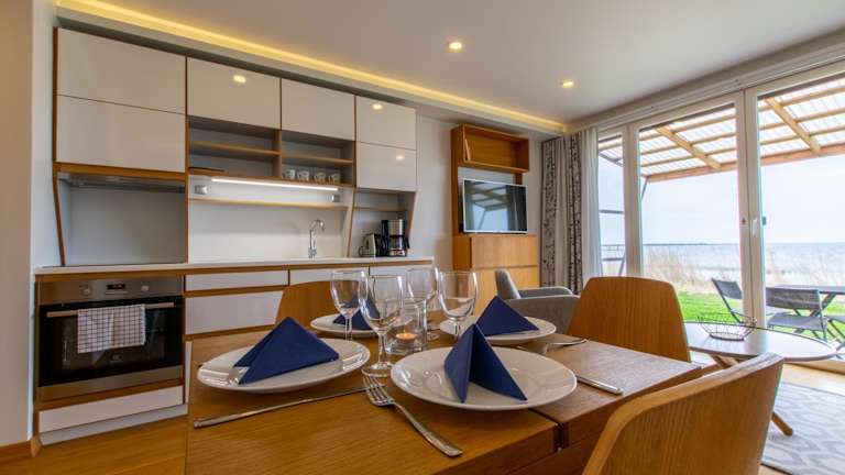 Die Appartement verfügen über eine voll ausgestattete Küche mit Herdplatte, Kühlschrank, Ofen, Kaffeemaschine und Wasserkocher. Somit haben Gäste die Möglichkeit, ihre eigenen Mahlzeiten zuzubereiten.