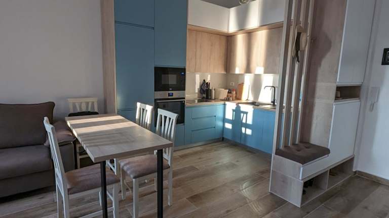 Die Ferienwohnung besteht aus einem Schlafzimmer, einem Wohnzimmer und einer voll ausgestatteten Küche mit Kühlschrank und Kaffeemaschine. Des Weiteren sind ein Badezimmer mit Bidet und Dusche vorhanden. Handtücher und Bettwäsche werden zur Verfügung gestellt. Die Unterkunft bietet zudem eine Terrasse und ermöglicht den Zugang zu kostenlosem Privatparkplatz.