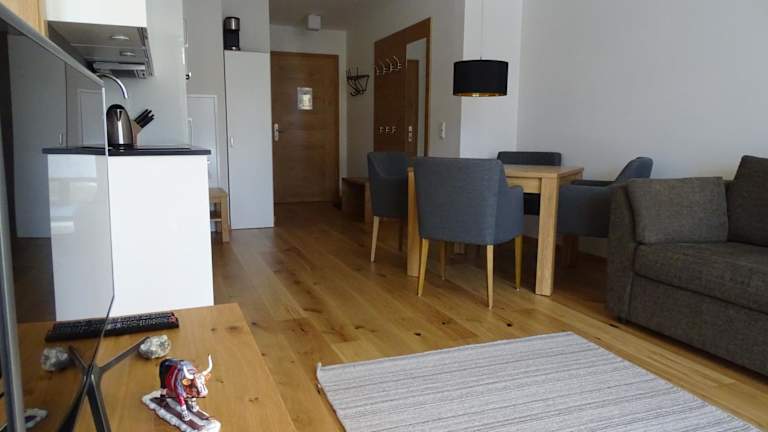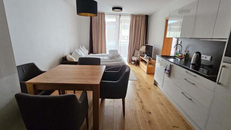 Das Appartement verfügt über 1 Schlafzimmer und ein Wohnzimmer mit Flachbild-TV. Die Küche ist gut ausgestattet mit Kühlschrank und Geschirrspüler. Des Weiteren gibt es ein Badezimmer mit Dusche. Zu den Annehmlichkeiten gehören Handtücher und Bettwäsche.