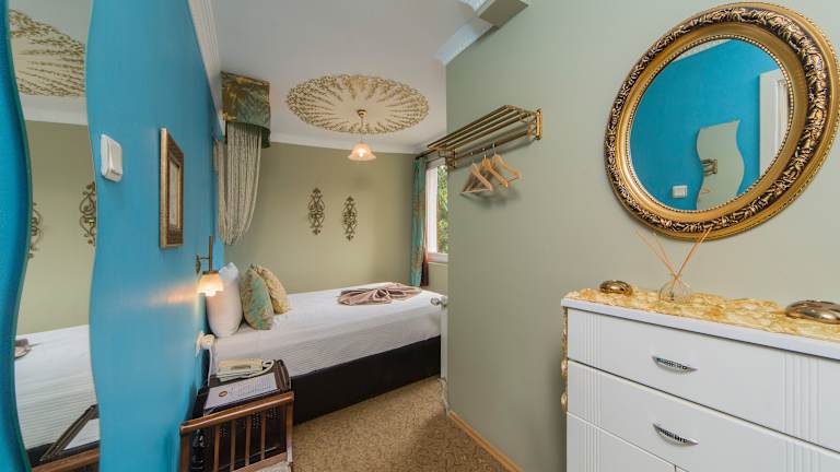Die Zimmer sind in warmen Farben gehalten, individuell eingerichtet und verfügen über eine Klimaanlage sowie ein eigenes Bad mit Pflegeprodukten. Einige Zimmer bieten eine herrliche Aussicht auf die Kirche Hagia Sophia. Das Hotel bietet zudem Nichtraucherzimmer und schallisolierte Zimmer.