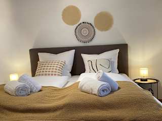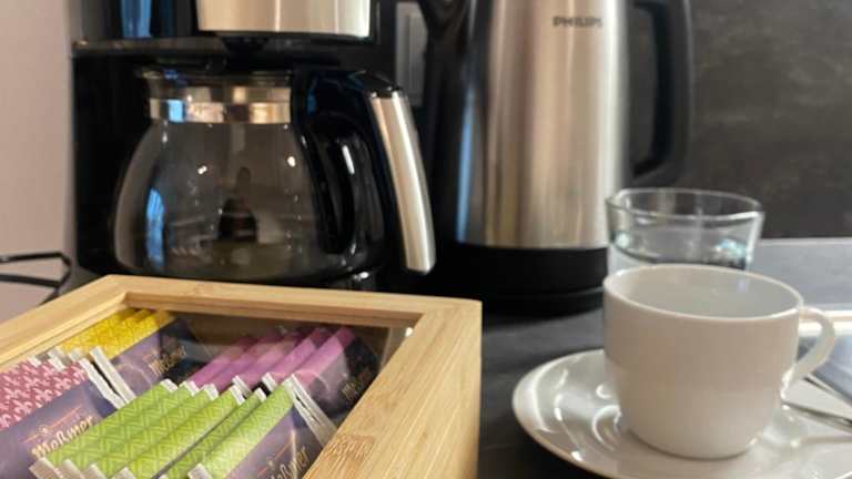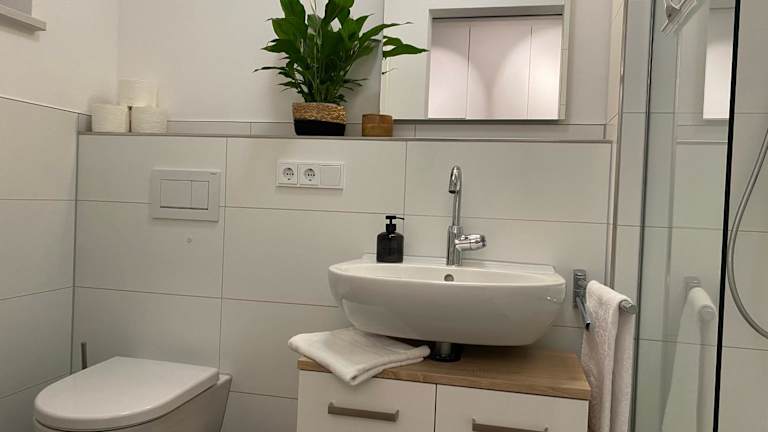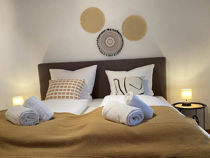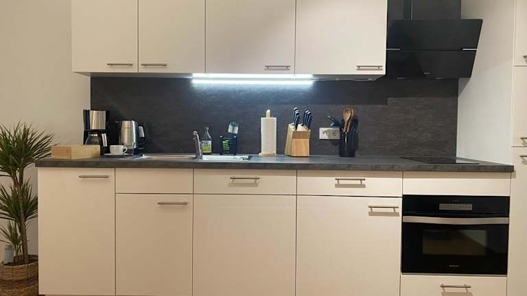 Die Ferienwohnung verfügt über ein Schlafzimmer und eine Küchenzeile mit einem Kühlschrank, einem Geschirrspüler sowie einer Kaffeemaschine. Handtücher und Bettwäsche werden zur Verfügung gestellt.