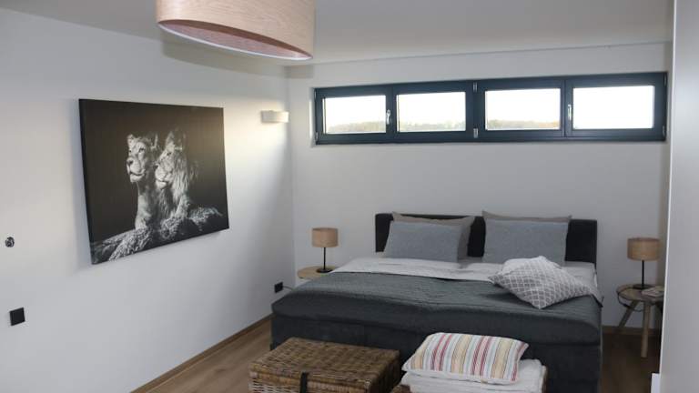 Die moderne barrierefreie Wohnung auf dem Land bei Neuruppin bietet Übernachtungsmöglichkeiten mit einer Terrasse und kostenlosem Wifi. Die Unterkunft verfügt über einen kostenlosen Privatparkplatz.