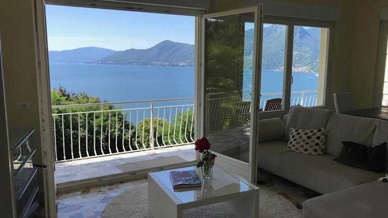 Die Moderne Ferienwohnung mit Traumseeblick Lago Maggiore verfügt über ein Apartment mit 1 Schlafzimmer, einem Wohnzimmer, einer voll ausgestatteten Küche und einem Badezimmer. Das Apartment ist modern eingerichtet und bietet einen Balkon mit Blick auf die Berge. Handtücher und Bettwäsche werden gestellt. WLAN ist in der Unterkunft kostenlos verfügbar.