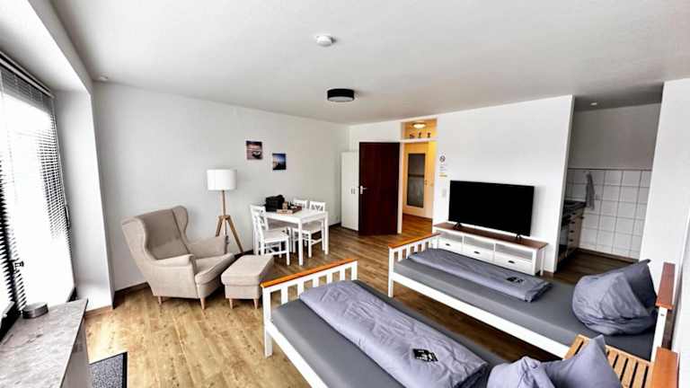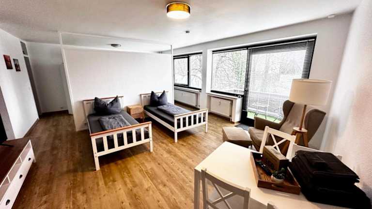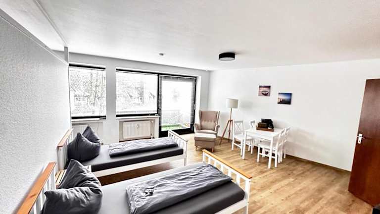 Die moderne Ferienwohnung Nr 1 bietet eine komfortable Unterkunft mit herrlichem Gartenblick. Sie verfügt über kostenloses Wifi, eine Sonnenterrasse sowie weitere Annehmlichkeiten, die den Aufenthalt angenehm gestalten.