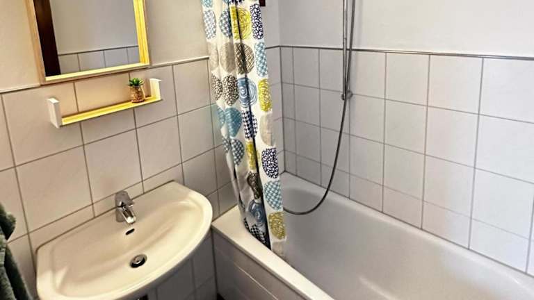 Die Ferienwohnung besteht aus einem Schlafzimmer und einem Badezimmer und ist mit Bettwäsche und Handtüchern ausgestattet. Ein Flachbild-TV ist ebenso vorhanden wie ein Essbereich und eine voll ausgestattete Küche. Der Balkon bietet einen schönen Stadtblick.