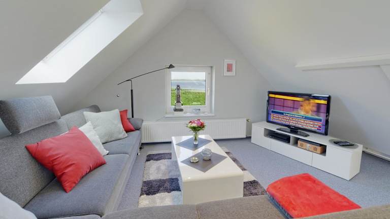 Die Umgebung bietet zahlreiche Möglichkeiten für Aktivitäten im Freien, wie Wandern und Velofahren. Es gibt einen direkten Zugang zu Strand und Deich.