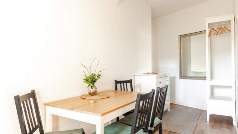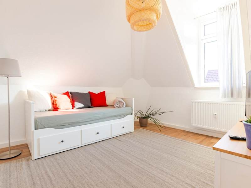 Die Ferienwohnung ist mit einem Schlafzimmer, einem Flachbild-TV, einem Essbereich, einer Küche mit Kühlschrank und einem Wohnzimmer eingerichtet. Handtücher und Bettwäsche werden zur Verfügung gestellt.