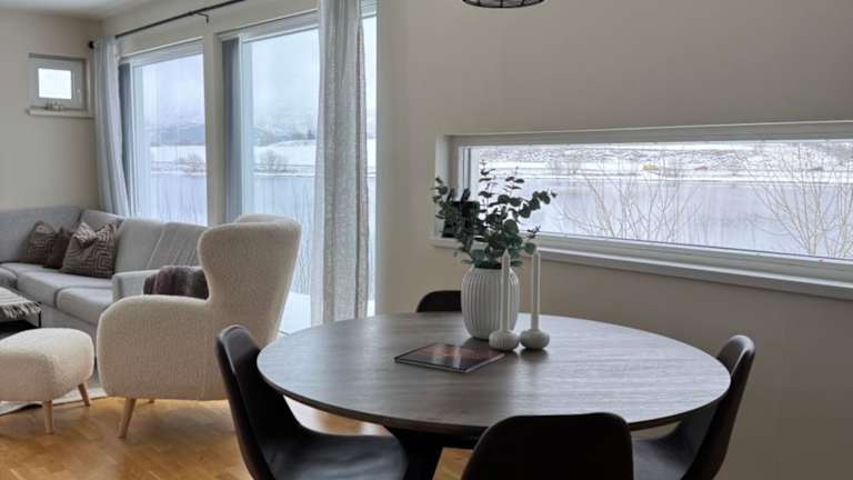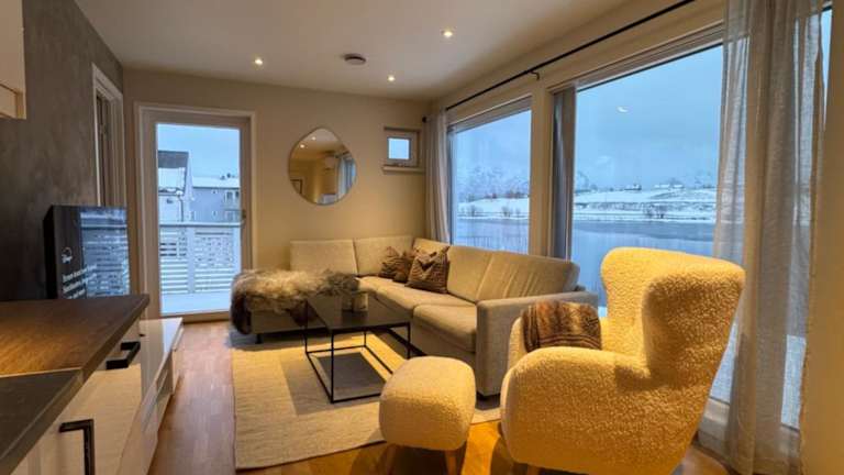 Moderne Leilighet i Lofoten umfasst klimatisierte Übernachtungsmöglichkeiten mit einer Veranda sowie einer Terrasse mit Blick auf die Berge. Die Unterkunft bietet zudem Zugang zu einem Balkon und einen kostenlosen Privatparkplatz. Es steht Gästen kostenloses Wifi zur Verfügung.
