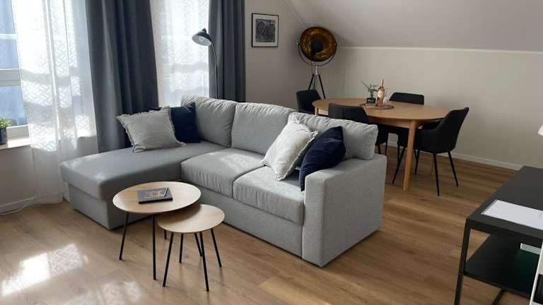 Moderne Wohnung - renoviert 2024 bietet eine heimelige Atmosphäre und ist ideal für Feriengäste. Die Unterkunft wird von einem privaten Gastgeber geführt und ist für Familien und Nichtraucher geeignet. Es sind keine Junggesellen-/Junggesellinnenabschiede oder ähnliche Feiern erlaubt.