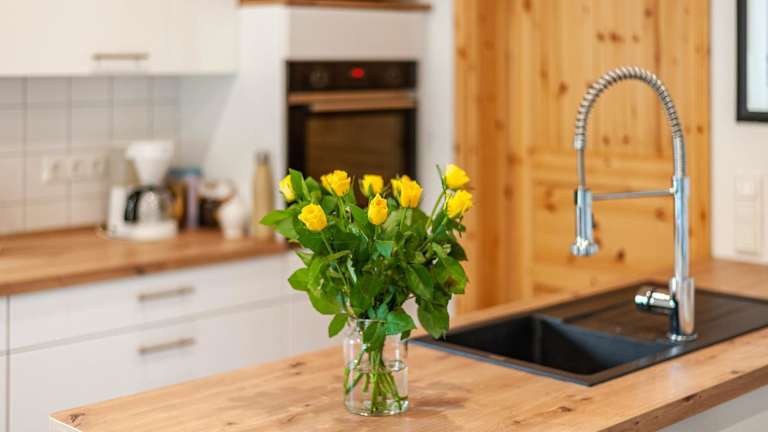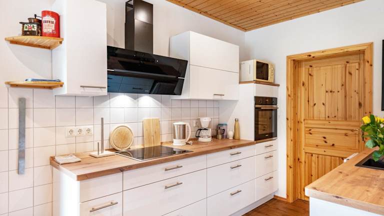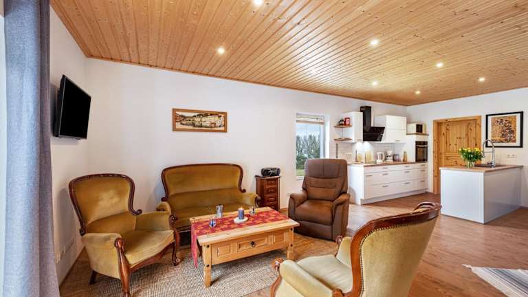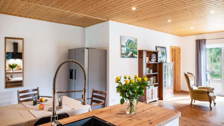 Der Bungalow besteht aus zwei separaten Schlafzimmern und umfasst eine voll ausgestattete Küche. Das Badezimmer ist modern gestaltet und praktischen Anforderungen angepasst.