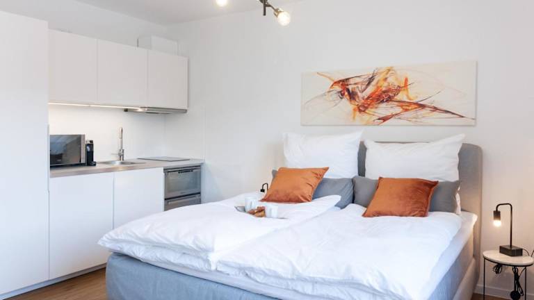 Die Ferienwohnung verfügt über 1 Schlafzimmer und 1 Badezimmer, sowie über Bettwäsche und Handtücher. Ein Flachbild-TV, ein Essbereich und eine voll ausgestattete Küche sind ebenfalls vorhanden. Zudem bietet die Unterkunft einen Balkon mit Stadtblick.