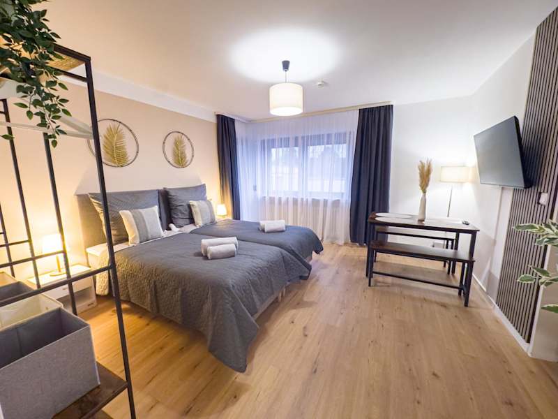 Das Apartment verfügt über 2 Schlafzimmer sowie eine Küche mit Kühlschrank und Ofen. Des Weiteren sind ein Flachbild-TV, ein Sitzbereich und ein Badezimmer mit Dusche vorhanden. Handtücher und Bettwäsche werden bereitgestellt.