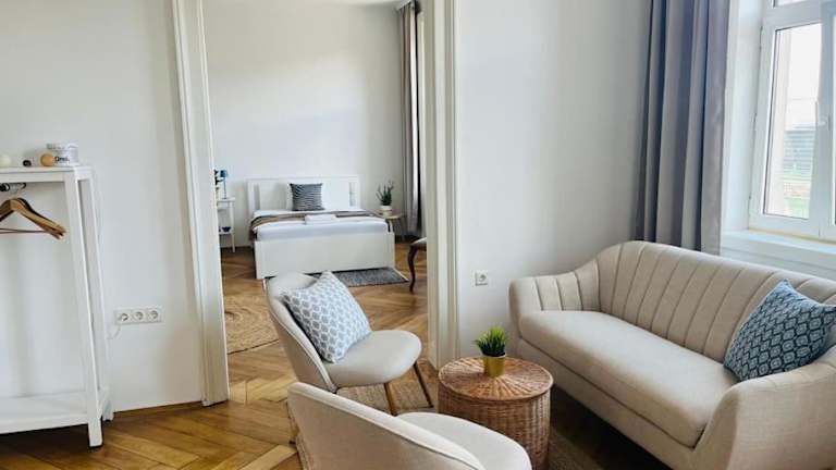 Die Unterkunft Modernes Design Apartment ist im Bezirk 18 Währing in Wien gelegen. Die Umgebung bietet eine Vielzahl von Sehenswürdigkeiten, darunter das Rathaus Wien in 2 km Entfernung, den Volksgarten in 2,6 km und die Hofburg in 2,8 km. Weitere kulturelle Attraktionen wie die Kaiserliche Schatzkammer Wien, das Österreichische Parlament und die Österreichische Nationalbibliothek sind ebenfalls in der Nähe und gut erreichbar.