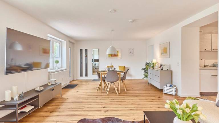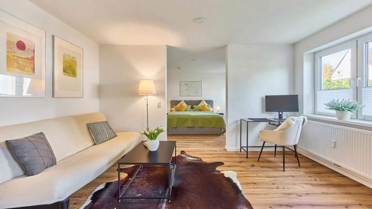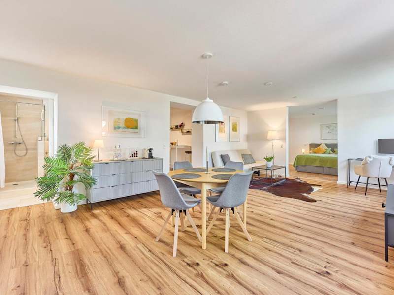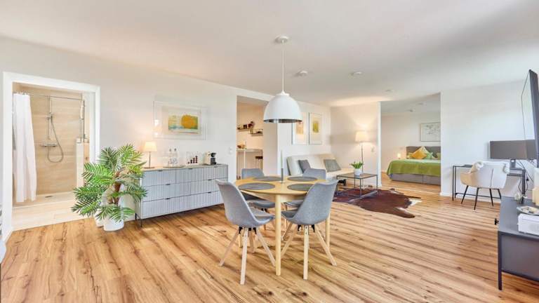 Das moderne Studio-Apartment bietet eine heimelige und zugleich moderne Atmosphäre. Es hat eine optimale Lage am Waldrand und sorgt somit für erholsame Ferien.