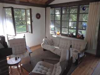 Das Ferienhaus verfügt über eine Terrasse, ein Schlafzimmer, ein Wohnzimmer und eine gut ausgestattete Küchenzeile.