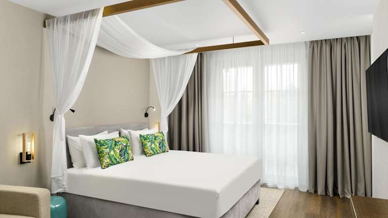 Wir waren mit der ganzen Familie im Mövenpick Balaland Resort Lake Balaton für 4 Nächte in einer Junior Suite untergebracht. Das Zimmer war sehr groß, genau richtig für uns alle 4! Sehr begeistert waren wir vom Essen, Frühstück und Abendessen waren sehr gut und lecker. Der Wellessbereich ist sehr zu empfehlen für Kinder, auch das anschließende Balaland ist großartig! Jederzeit wieder in dieses Hotel!!
