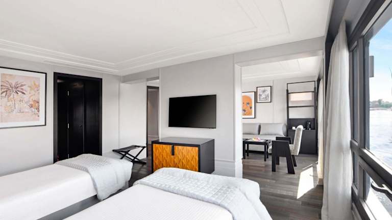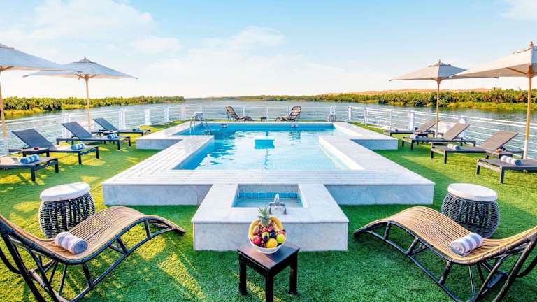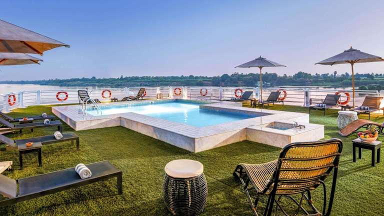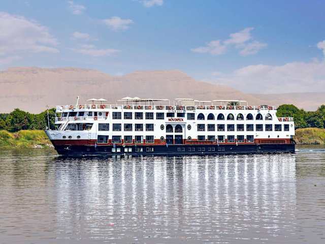 Das Movenpick MS Sunray Nile Cruise bietet ein einzigartiges Kreuzfahrterlebnis auf dem Nil. Das Schiff überzeugt durch einen durchgehenden Flussblick und verschiedene Annehmlichkeiten, darunter einen Aussenpool und eine Bar. Die rund um die Uhr besetzte Rezeption sorgt für einen reibungslosen Aufenthalt.
