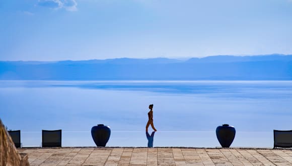 Direkt am Ufer des Toten Meeres, dem tiefsten Punkt der Erde. Die Transferzeit vom Flughafen beträgt ca. 60 Minuten. Die Lage ist von Natur umgeben und verfügt über einen flach abfallenden Strand.