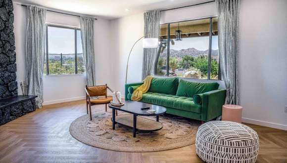 Die Unterkunft Mojave Desert Pied-à-terre bietet Übernachtungsmöglichkeiten in einem klimatisierten Ferienhaus mit gehobener Ausstattung. Die Gäste geniessen Zugang zu einem Whirlpool und können den Grill nutzen. Ein Privatparkplatz steht vor Ort zur Verfügung.