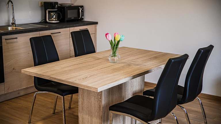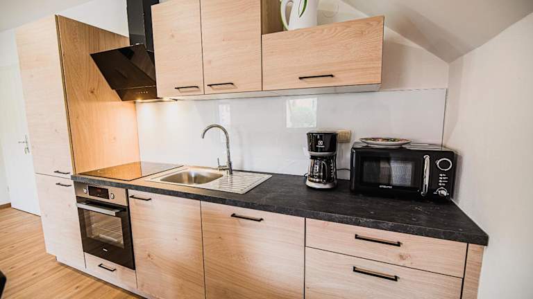 Die Wohneinheiten sind mit einer voll ausgestatteten Küche, einem Esstisch, einem Flachbild-TV mit Satellitenkanälen und einem eigenen Badezimmer ausgestattet. Zur Ausstattung gehören auch ein Kühlschrank, eine Mikrowelle, eine Herdplatte, eine Kaffeemaschine und ein Wasserkocher.