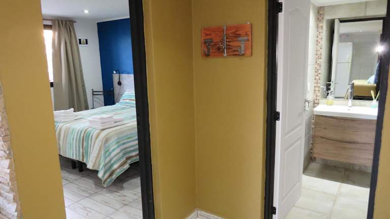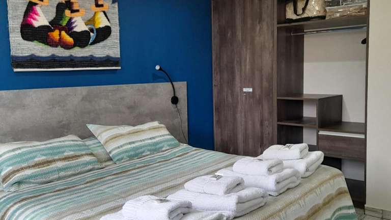 Die Ferienwohnung umfasst ein Schlafzimmer, ein Wohnzimmer sowie eine voll ausgestattete Küche mit Kühlschrank und Ofen. Handtücher und Bettwäsche stehen zur Verfügung.
