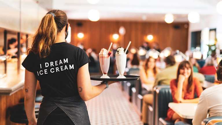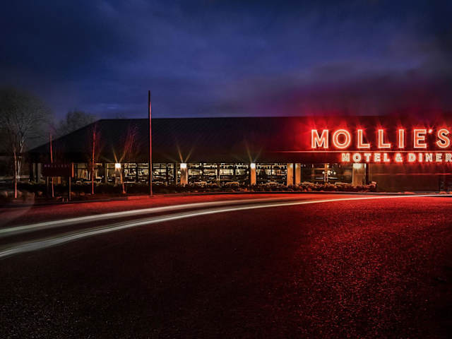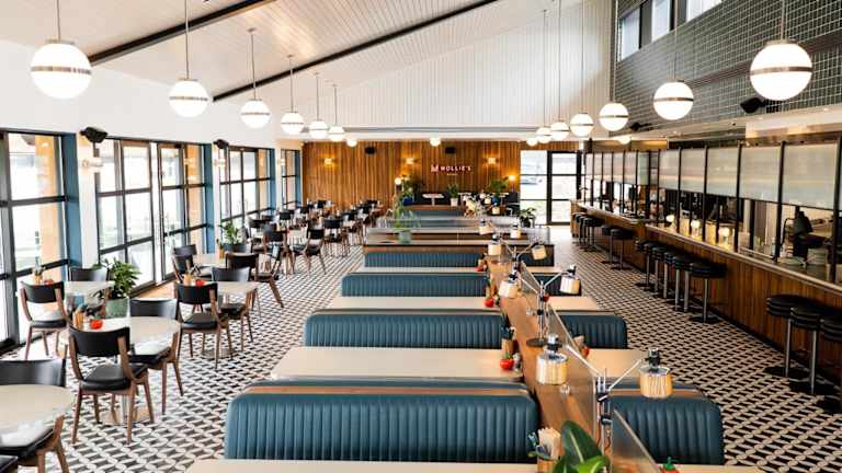 Im Diner nebenan befindet sich ein offenes Küchen-Diner mit beheizter Aussenterrasse und einer Vielzahl von Speisen, darunter ganztägig Frühstück, Brunch, Mittagessen und Abendessen. Das Diner bietet auch ein Mini Mollie Kindermenü an. Für Gäste, die es eilig haben, gibt es ein Fast-Track Grab & Go Angebot. Ein Frühstück kann auch im Voraus im digitalen Wallet gespeichert und im Diner eingelöst werden.