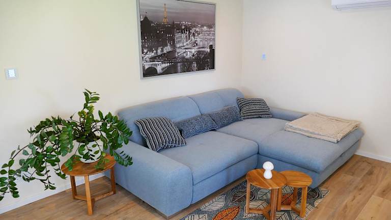 Die Wohnung umfasst ein Schlafzimmer, ein Wohnzimmer sowie eine voll ausgestattete Küche mit einem Kühlschrank und einer Kaffeemaschine. Das Badezimmer ist mit einer Dusche und kostenlosen Pflegeprodukten ausgestattet. Für die Gäste werden Handtücher und Bettwäsche zur Verfügung gestellt. Die Unterkunft bietet zudem Annehmlichkeiten wie Klimaanlage und Heizung.