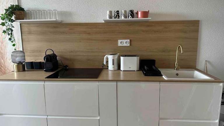 Die Unterkunft verfügt über eine voll ausgestattete Küche mit Kühlschrank und Kaffeemaschine. Lebensmittellieferungen sind gegen Aufpreis möglich. Es gibt keine Informationen zu weiteren Verpflegungsmöglichkeiten oder Restaurants vor Ort.