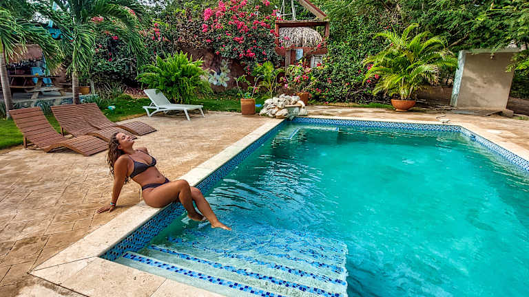 Die Mondi Lodge ist ein kleines, familiengeführtes, umweltfreundliches Hotel auf Curaçao in der niederländischen Karibik. Es gibt 5 einzigartige Holzhütten auf Pfählen; Alle enthalten maximalen Komfort und Annehmlichkeiten. Jede Kabine hat ihre eigenen Eigenschaften. Mondi Lodge ist zentral gelegen mit 4 Stränden im Umkreis von 2 Kilometern und 10 Minuten Fahrt vom Flughafen und der farbenfrohen Hauptstadt Willemstad entfernt. Für Gäste, die es lieben, die Unterwasserwelt zu erkunden, ist es gut zu wissen, dass wir einige aufregende Tauchplätze und verschiedene Tauchschulen in der Nähe haben. Die Atmosphäre in der Mondi Lodge ist entspannt, romantisch und sehr privat. Gelassenheit ist leicht hier während des Tages und der Nacht gefunden. Der Pool und die gemütliche Außenküche mit Grillplatz stehen unseren Gästen jederzeit zur Verfügung. Derzeit sind wir dabei, die Anforderungen für eine offizielle Eco-Lodge-Zertifizierung umzusetzen. Gleichzeitig pflegen und verbessern wir unseren personalisierten Service wo immer es möglich ist. Unsere Frühstücksangebote (die im Preis enthalten sind) werden mit großer Begeisterung angenommen! Eine unserer Kabinen ist für Rollstuhlfahrer zugänglich und mit verschiedenen Modifikationen für unsere behinderten Gäste ausgestattet.