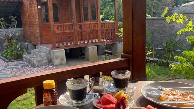 Ein asiatisches Frühstück wird in der Unterkunft Mondok Dini angeboten.