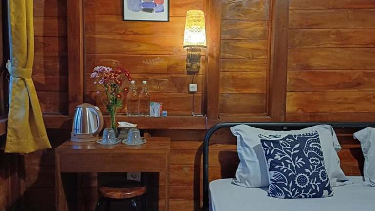Die Zimmer in der Unterkunft Mondok Dini sind mit einem Kleiderschrank ausgestattet. Jedes Zimmer verfügt über ein eigenes Badezimmer mit einem Bidet und kostenlosen Pflegeprodukten. Zudem sind alle Zimmer mit Klimaanlage und einem Schreibtisch versehen. Das kostenlose Wifi steht den Gästen ebenfalls zur Verfügung. Einige Zimmer bieten einen Blick auf den Fluss.