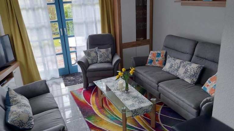 Das Ferienhaus ist mit zwei Schlafzimmern ausgestattet. Zur weiteren Ausstattung gehören ein TV mit Kabelkanälen sowie eine voll ausgestattete Küche, die einen Kühlschrank, einen Geschirrspüler, eine Waschmaschine, einen Ofen und eine Mikrowelle umfasst. Allergikerfreundliche Zimmer sind ebenfalls verfügbar.
