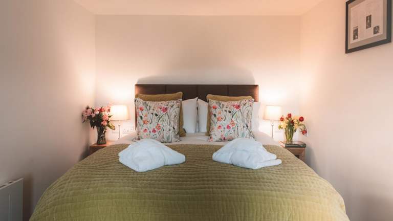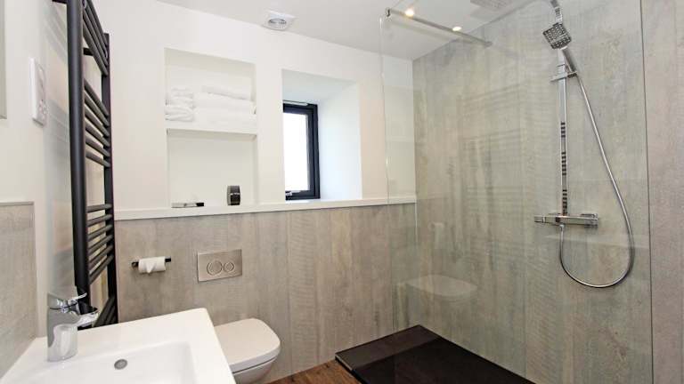 Das Ferienhaus umfasst ein Schlafzimmer, ein Wohnzimmer mit Flachbild-TV, eine voll ausgestattete Küche mit Kühlschrank und Geschirrspüler sowie ein Badezimmer mit Dusche. Handtücher und Bettwäsche werden bereitgestellt.