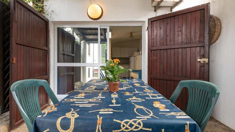 Die Ferienwohnung ist ausgestattet mit einem Schlafzimmer, einem Badezimmer, Bettwäsche, Handtüchern, einem TV sowie einer voll ausgestatteten Küche. Eine Veranda/Patiogibt es mit Gartenblick.