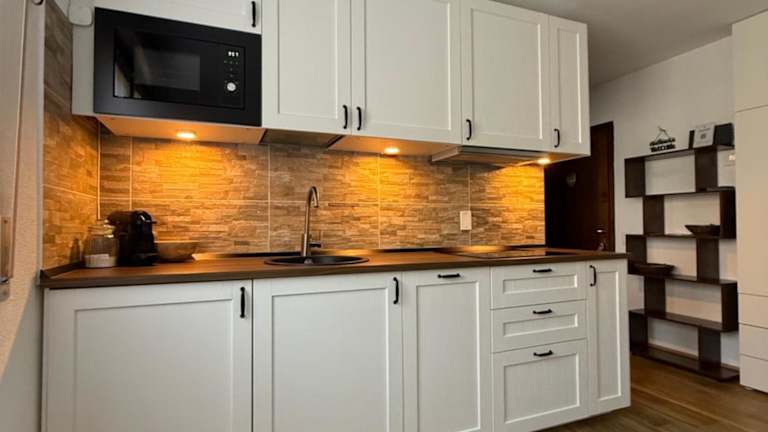 Das Apartment besteht aus einem Schlafzimmer, einer Küche und einem Badezimmer. Ausserdem ist ein Flachbild-TV vorhanden.