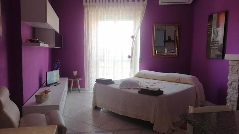 Die Ferienwohnung verfügt über ein Schlafzimmer und eine Klimaanlage. Das Badezimmer ist mit einem Bidet, einer Dusche und einem Haartrockner ausgestattet. In der Küche finden Gäste einen Kühlschrank, eine Mikrowelle, eine Herdplatte sowie eine Kaffeemaschine vor. Zudem ist ein Balkon vorhanden.